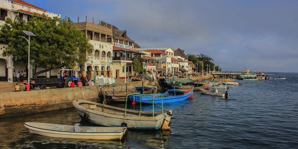 The Lamu Archipelago is a small group of islands situated on Kenya's northern coastline, near Somalia. It is made up of Lamu, Manda, Pate, and Kiwayuu islands. Lamu town is the headquarters of Lamu District, one of the six districts of Kenya's Coast Province. It borders the Indian Ocean to the east, the Tana River District to the southwest, the Garissa District to the north, and the Republic of Somalia to the northeast. The county has a land surface area of 6,474.7 km2, which includes the mainland and over 65 islands that form the Lamu Archipelago. The total length of the coastline is 130 km, while the land water mass area stands at 308 km. The streets of Lamu are nowhere more than eight feet wide. The proximity of the high stone walls cools the air and means that the streets are always in shadow. An unforeseen benefit of their narrowness is that there are no motor vehicles in Lamu; all transport is by handcarts and donkeys. There are over 160 historic houses clustered in Stone Town, all built to the same traditional design, with a central courtyard surrounded by long narrow galleries and a flat open roof, sometimes shaded by a palm-frond thatch shelter. Most of the houses have ornate carved wooden doors and, inside, walls of elaborate carved-plaster niches that have to be seen to be believed.